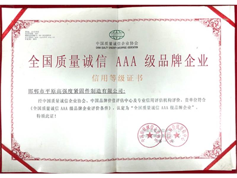 全國(guó)質量誠信AAA級品牌企業(yè)
